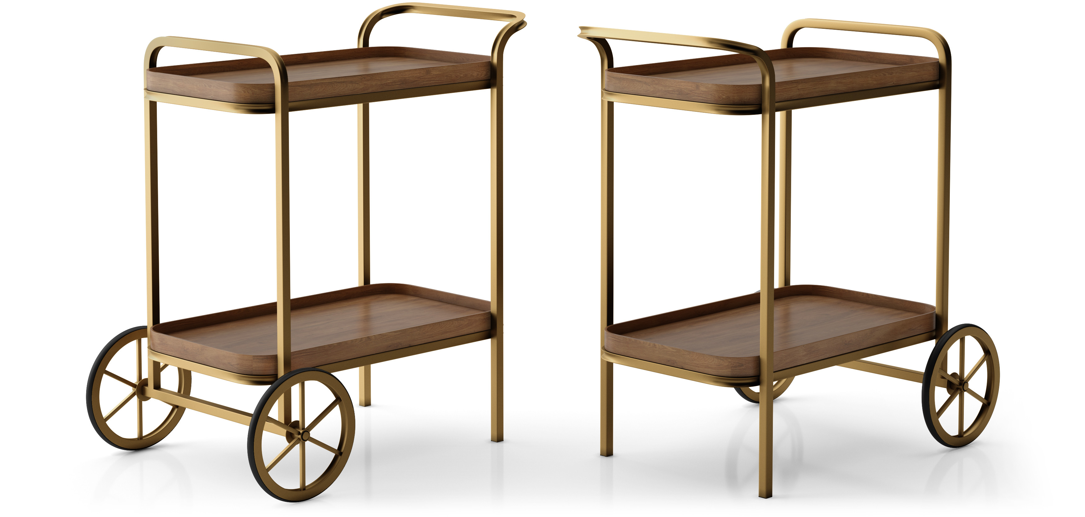 Carrinho bar LC 9020 com tampos tipo bandeja, revestidos com laminado natural. Estrutura em tubo de aço 20x20x1,20mm Pintado com tinta epoxi.