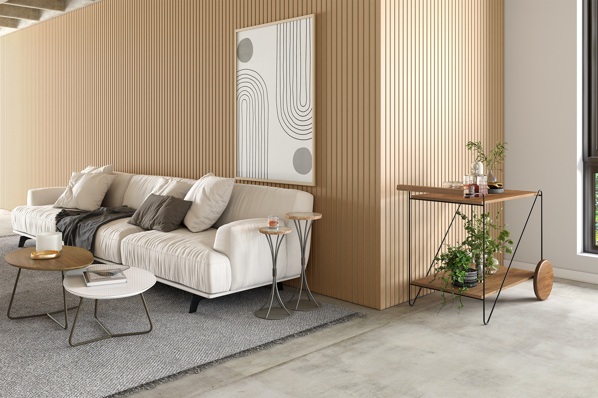 Mesinhas Centro Baixa LC 9050 tampo em mdf revestido com laminado natural, LC 9051 tampo em mdf pintado + vidro. Estruturas em tubo aço carbono pintado com tinta epoxi