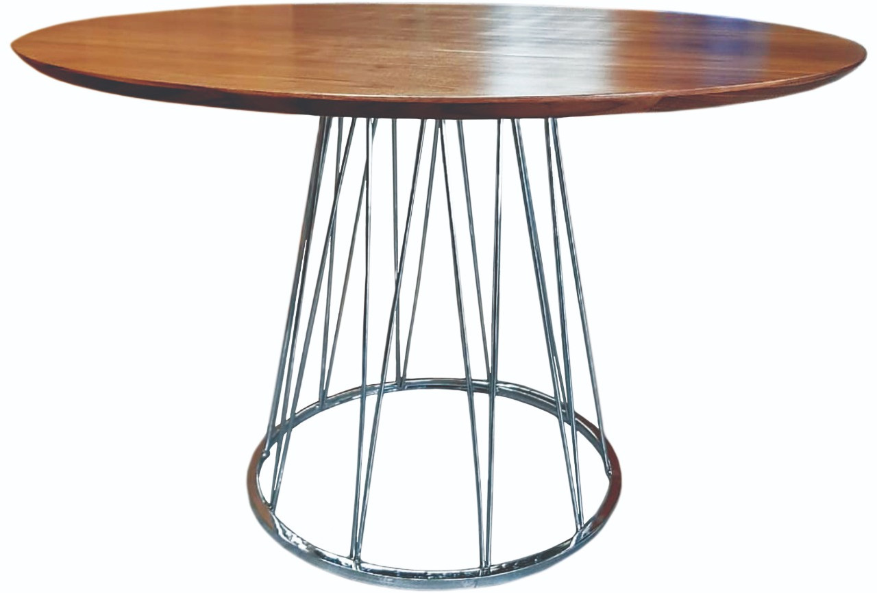 Mesa base em ferro maciço e tubo pintada ou cromada, com tampo com diâmetro de 1200 mm.
