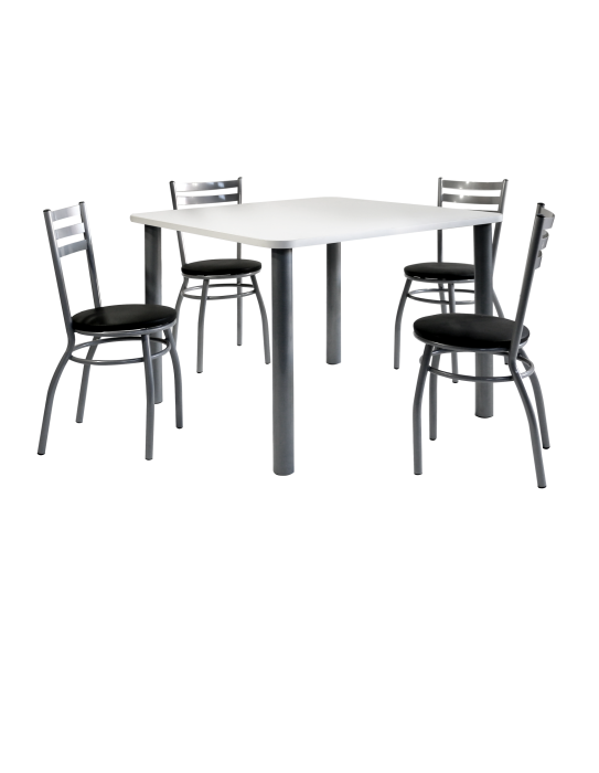 Mesa com pés tubo 3" x 1,20 tampo quadro de 800 x 800 x 30 mm , revestido com formica branca tx. somente pintada. Com cadeira CR 1001