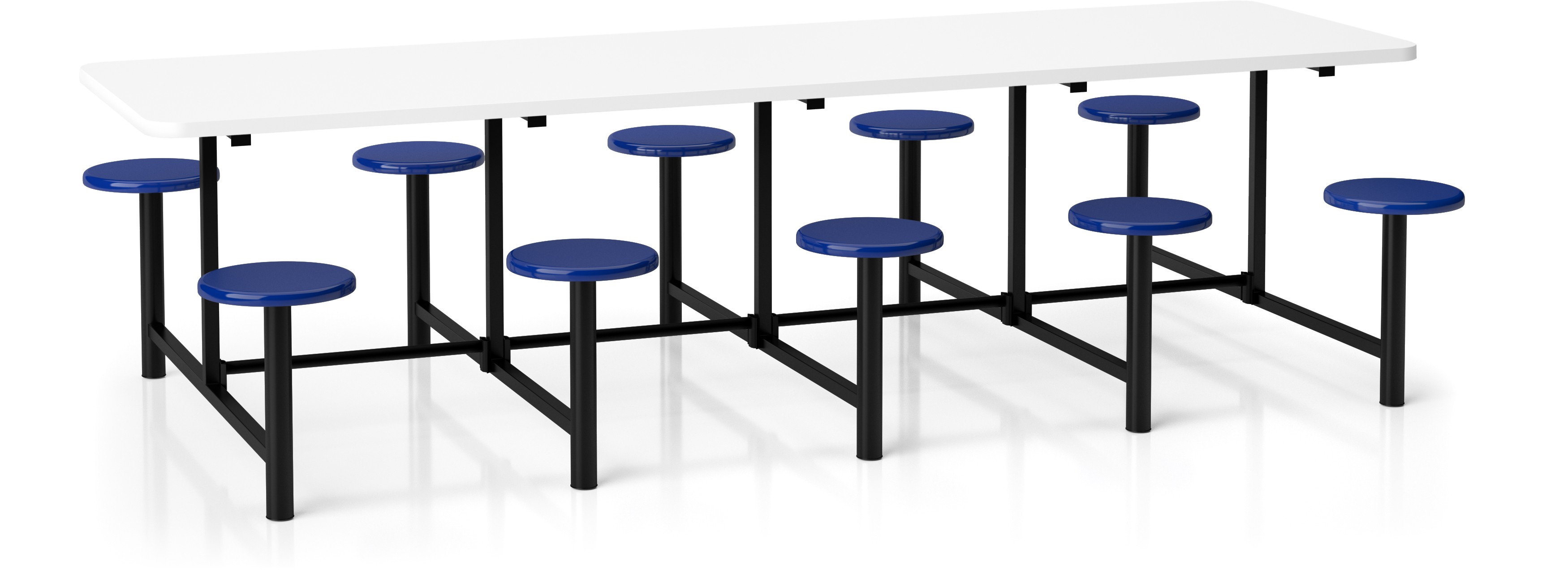 Mesa para refeitorio com 10 assentos fixos em PVC injetado. MF 3110