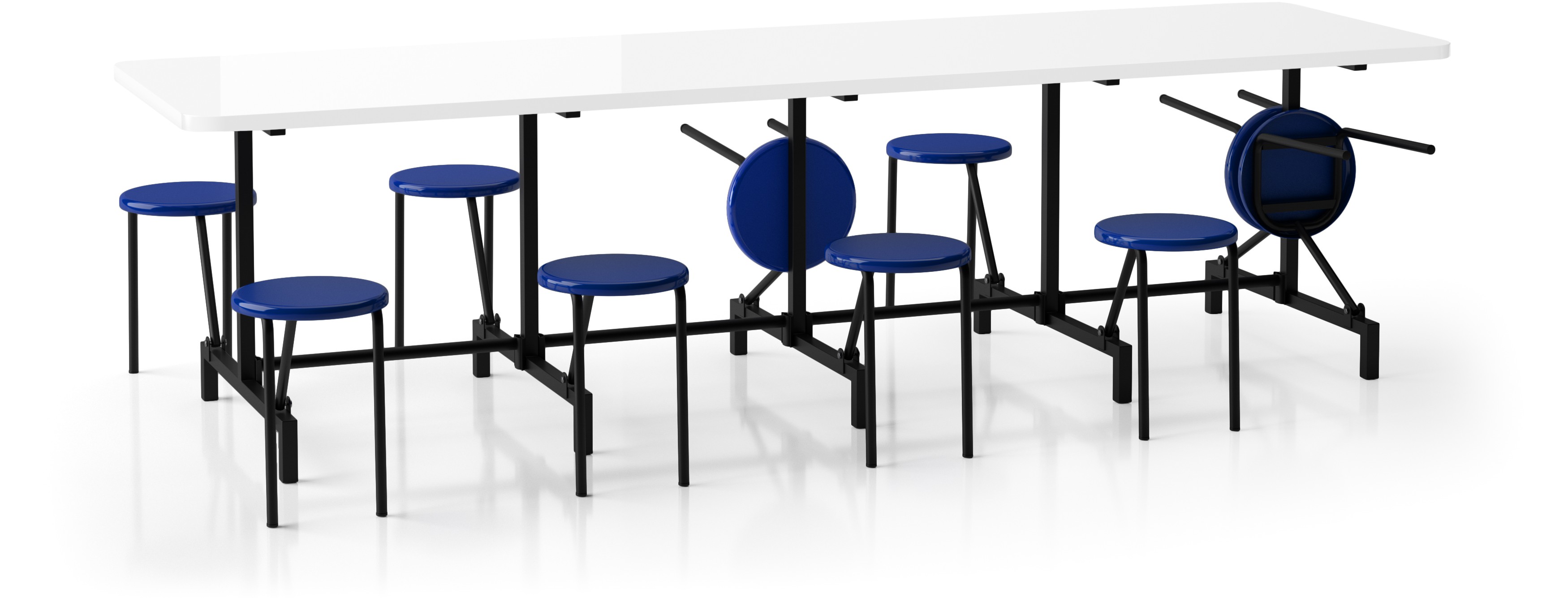 Mesa refeitorio com 10 assentos escamoteávies em PVC injetado. ME 7110