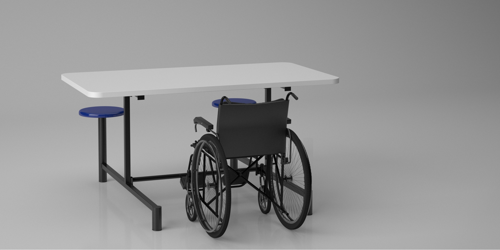 Mesa refeitório para cadeirante com 4 e 6 assentos escamoteáveis em PVC injetados ME 7044 C e ME 7066 C