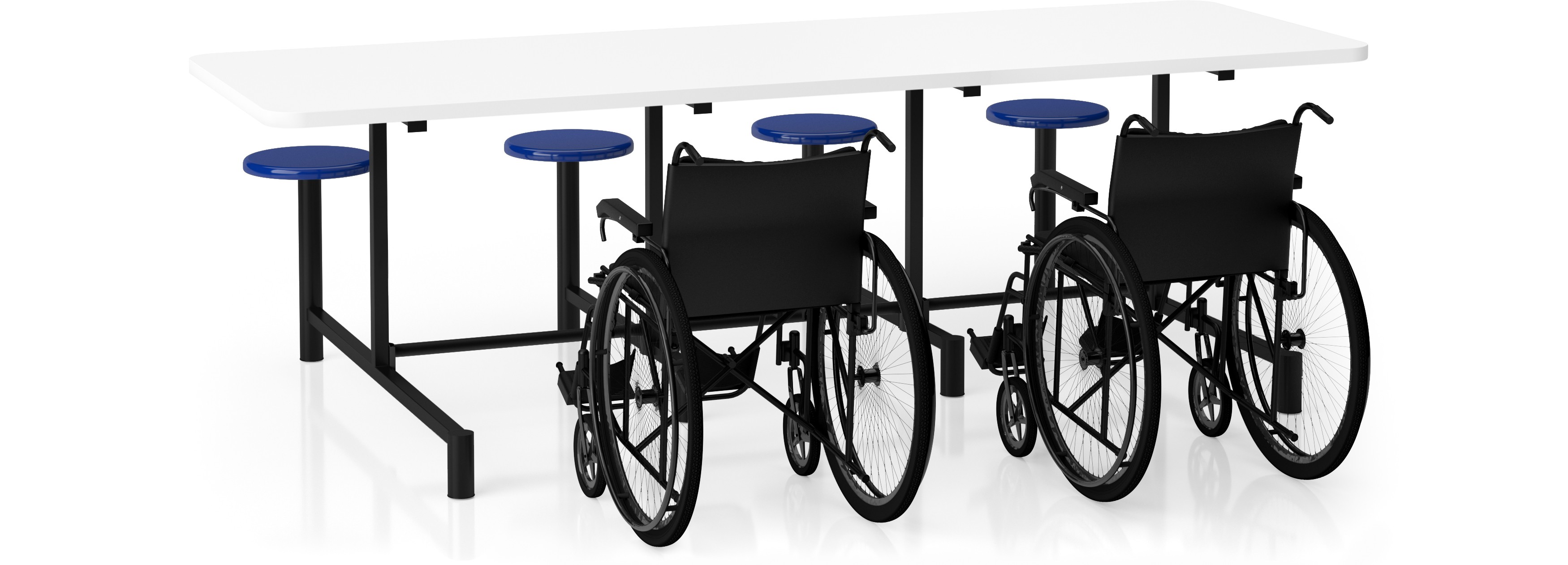 Mesa refeitório para cadeirante com 8 e 10 assentos escamoteáveis em PVC injetado ME 7088 C e ME 7110 C