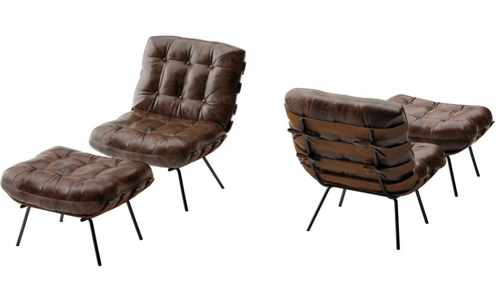 Poltrona Costela com almofadas em corino ou tecido pés metálicos, somente pintados